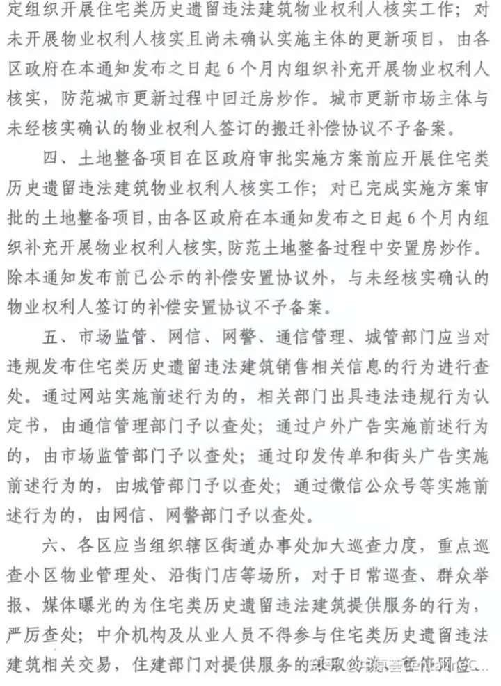 将对违法正式发布违法建筑物进行买卖有关重要信息的中介、从业者、中文网站、社会公众号等展开严肃查处;
