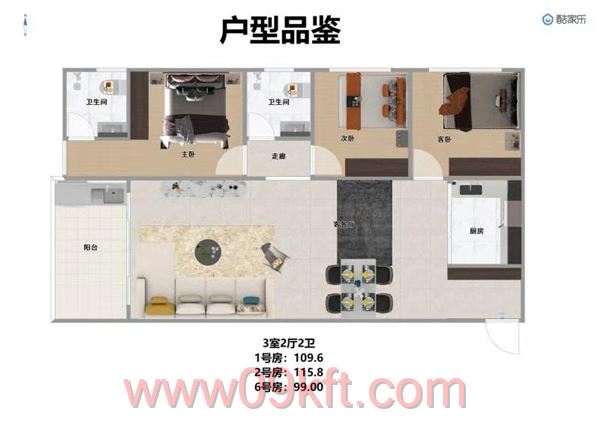 三房两厅: 99㎡-80.8㎡-109.6㎡-115.8㎡